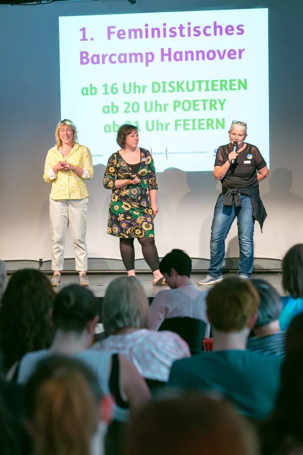 Das 1. Feministische Barcamp Hannover ist dem Format entsprechend als eine offene Tagung mit Kleingruppensitzungen – sogenannten Sessions – konzipiert gewesen. Die Kleingruppen, in denen sich zwichen 7-30 Personen zusammenfanden, konnten von Interessierten zu feministischen Themen beliebig gestaltet werden: z.B. als Workshop, Diskussionsrunde oder Lesung.