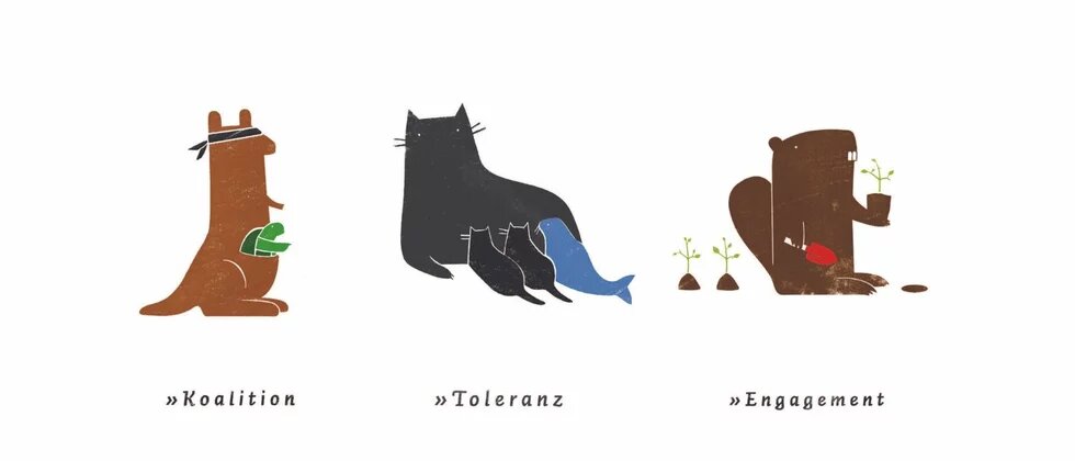 Auf unseren zehn Postkarten finden sich je eine bezaubernde Grafik und ein Stichwort zum Thema Demokratie. Zum Diskutieren, ins Gespräch kommen, zum Anpinnen und Versenden!