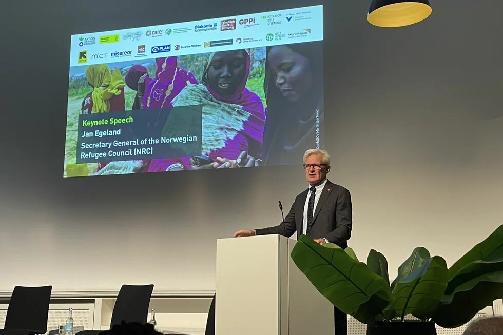 Jan Egeland, Generalsekretär des Norwegian Refugee Council (NRC), weist in seiner Rede auf drei Hauptfaktoren hin, die zu der verheerenden humanitären Lage im Sudan beitragen.